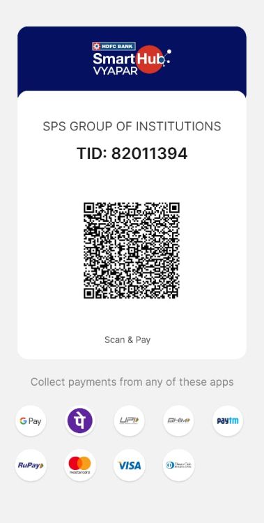 https://www.spsuniversity.in/ | NAME - SPS Group Of Institutions A/C NO. - 50200102161427 IFSC CODE- HDFC0000505 MICR code - 335240002 |